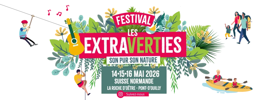 Date: 14 mai 2026 Adresse: Pont D'Ouilly / La Roche D'Oëtre Combiner les loisirs de pleine nature et les concerts de musiques festives, c’est ça l’ambition du Festival LES EXTRAVERTIES. Rendez-vous les 14.15.16 mai 2026 !